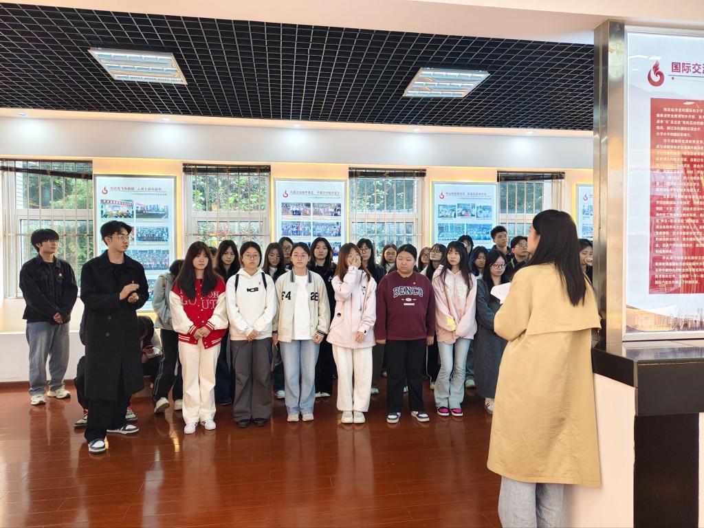 罗江结合老照片、实物展品与纪实影像,系统讲解学校发展脉络,从早期扎根职业教育、助力地方产业培育的探索,到近年推进教育教学改革、聚焦技能人才培养的创新,从校训“明德强技 行健精艺”的提出背景,到党建引领下校企合作、技能竞赛的亮眼成果。同时,她以“蜂巢”辅导员工作室为例,通过校史学习来践行工作室“以党建引领学风”的理念,从而让学生激发学习热情与奋斗精神。参观过程中,学员们认真聆听、不时提问,对身为“大工商”一员的归属感与荣誉感在“历史+实践”的解读中不断提升。