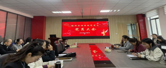 2025年10月28日,经济管理学院党总支在财经楼205会议室召开深入贯彻中央八项规定精神学习教育总结大会暨党的二十届四中全会精神宣讲会,会议由经济管理学院党总支书记郭卿主持,经济管理学院党总支全体同志参加了会议。
